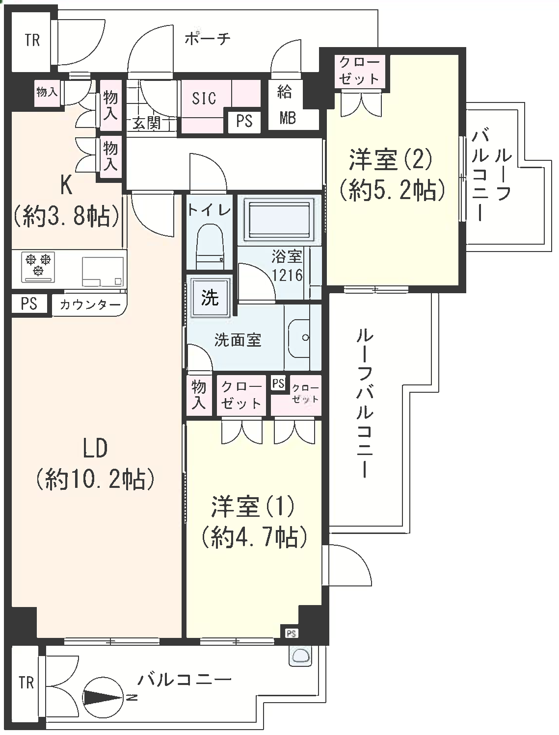 中野新橋 57.78㎡ 2LDK 6,680万円(ルーフバルコニー、新耐震基準、収納)