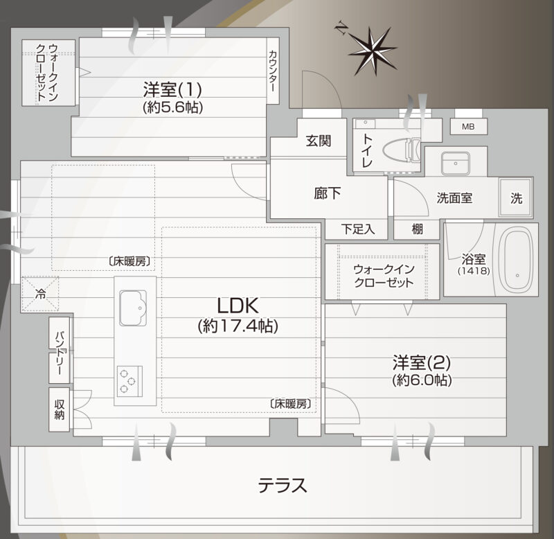 参宮橋 71.46㎡ 2LDK 9,380万円(管理体制良好、床暖房付き、新規内装リフォーム、WIC付き、浴室乾燥機、タンクレストイレ)