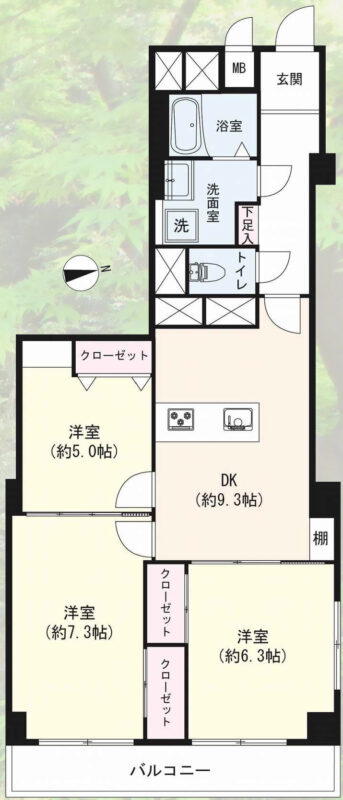 大崎 66.61㎡ 3DK 5,980万円(角部屋、ワークスペース)
