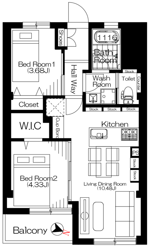 新宿 45.36㎡ 2LDK 4,380万円(ウォークインクローゼット、山手線沿線)
