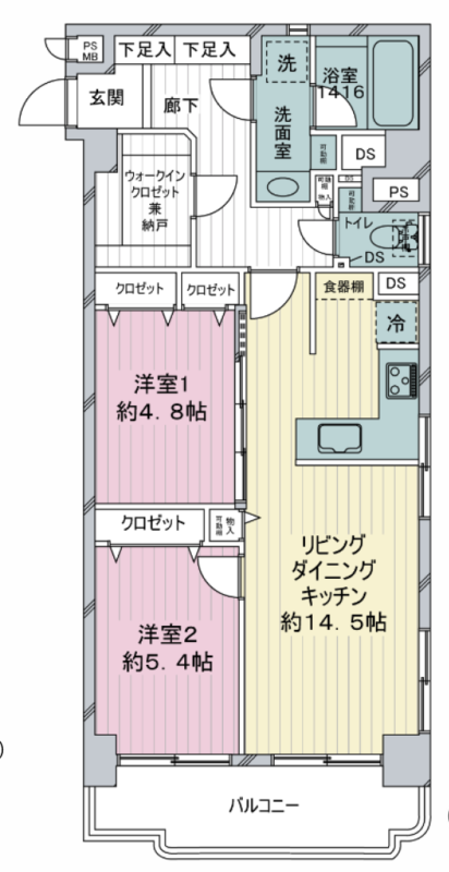東中野 66.53㎡ 2SLDK 5,098万円(ヴィンテージマンション、大型収納部屋、南東角部屋)