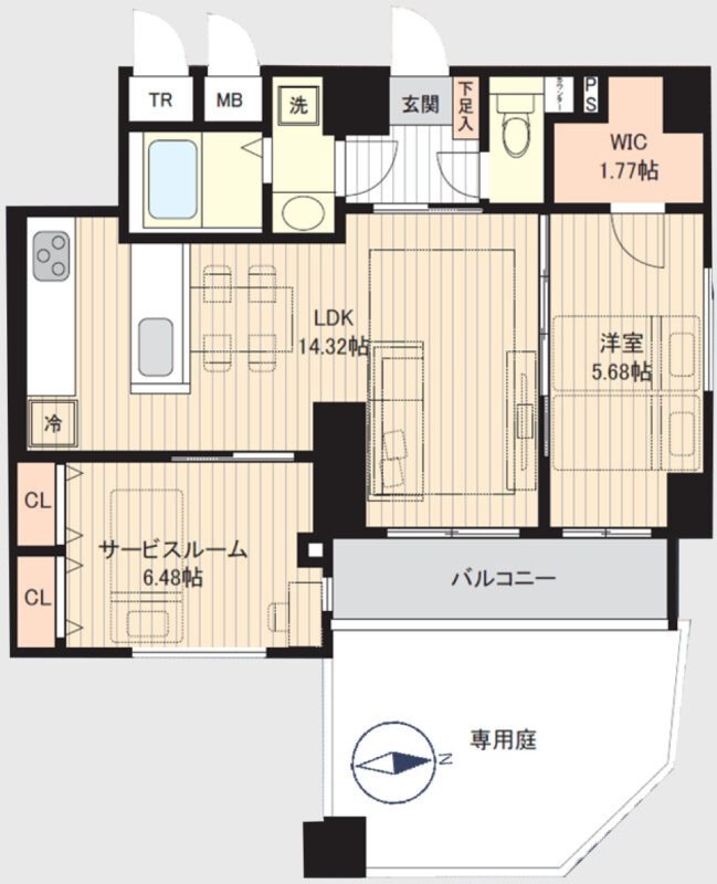 荏原中延 59.57㎡ 1SLDK 6,580万円(新耐震基準、専用庭、オートロック)
